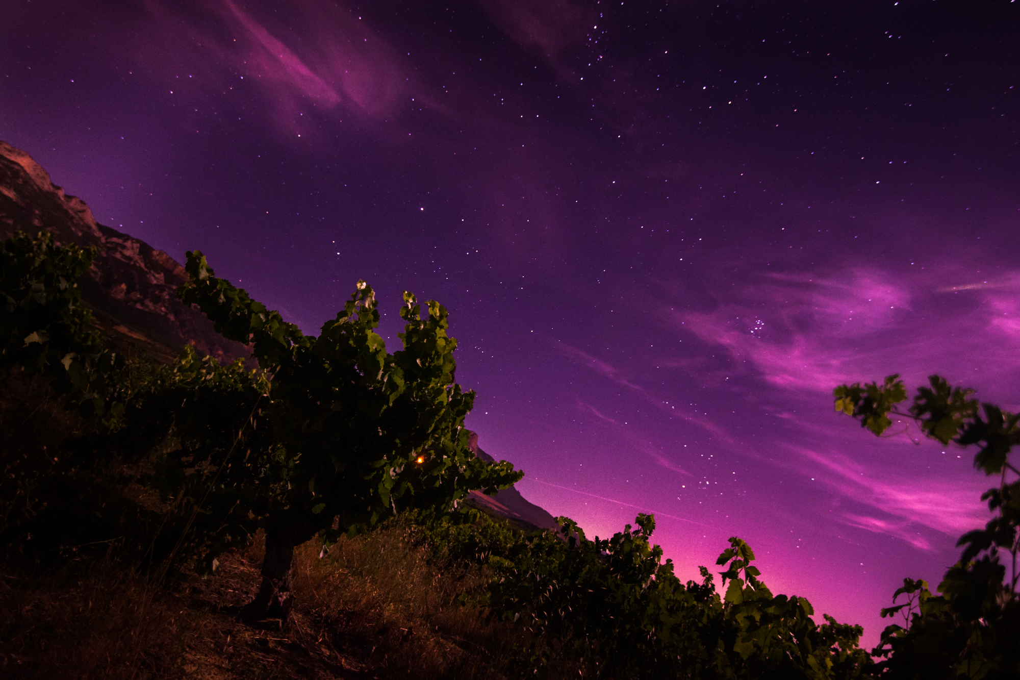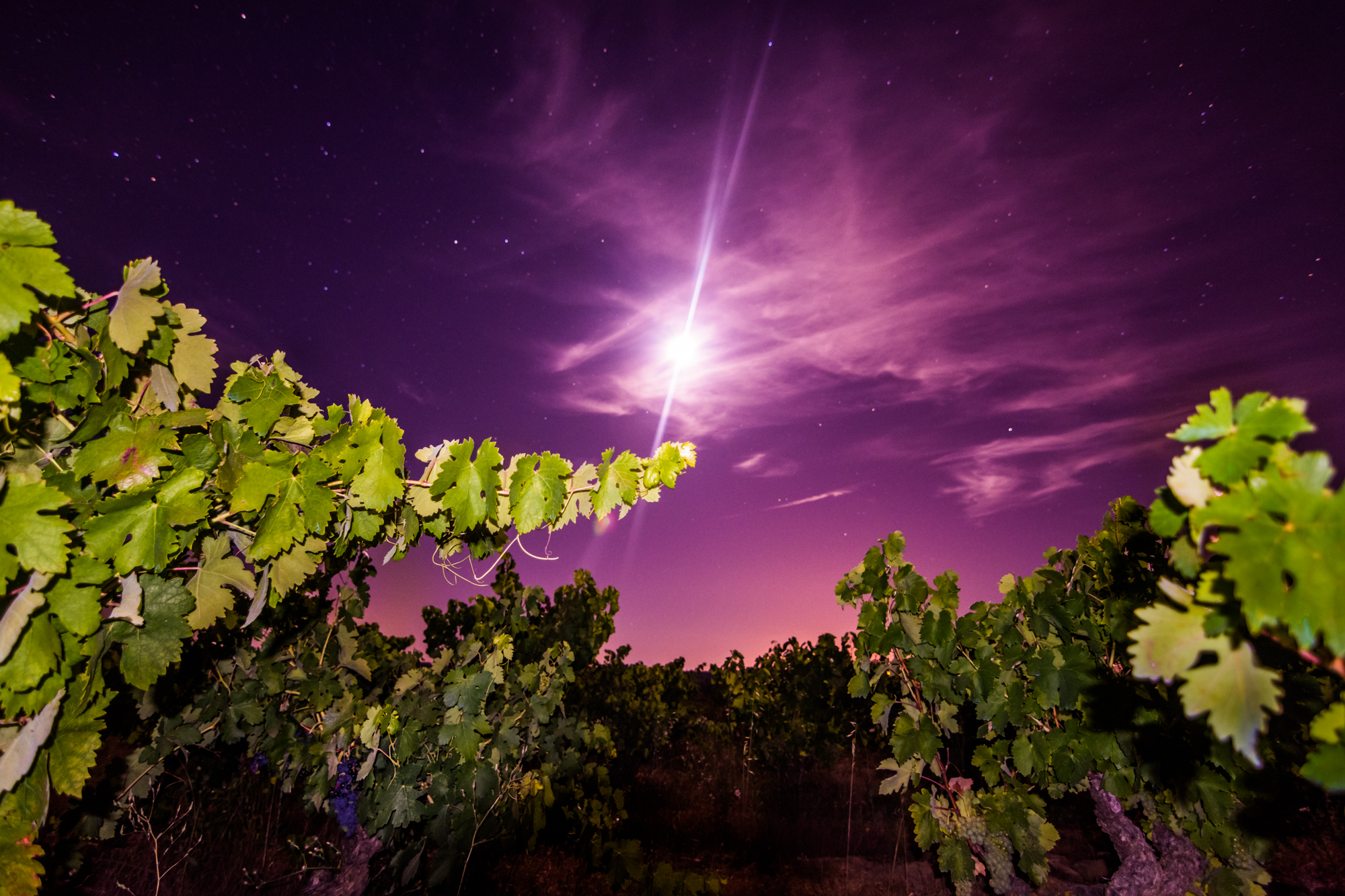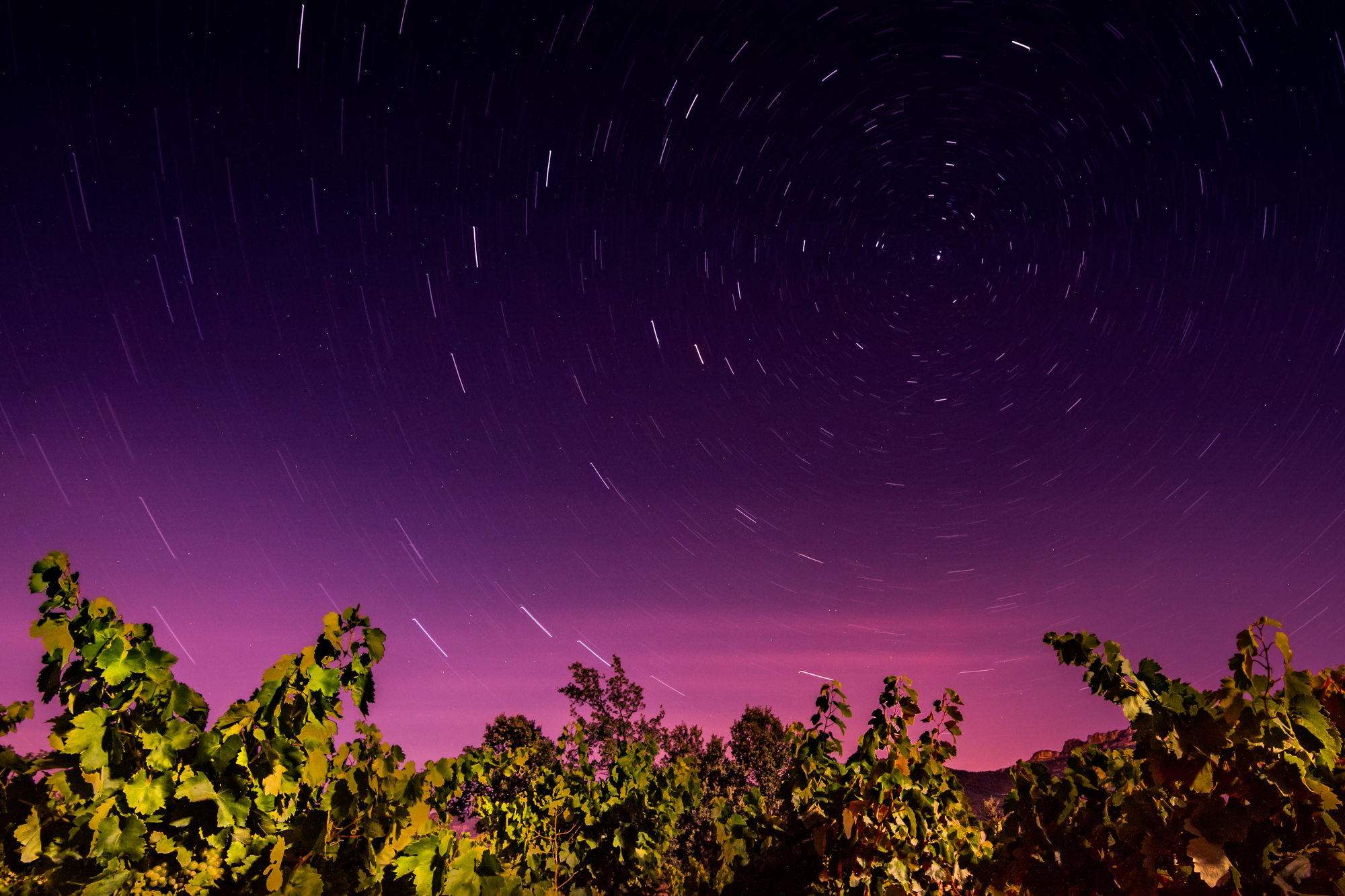 Optamos por jugar con el tono ‘oficial’ de la región: el vino, para teñir los ‘cielos ocultos’ por la contaminación lumínica.