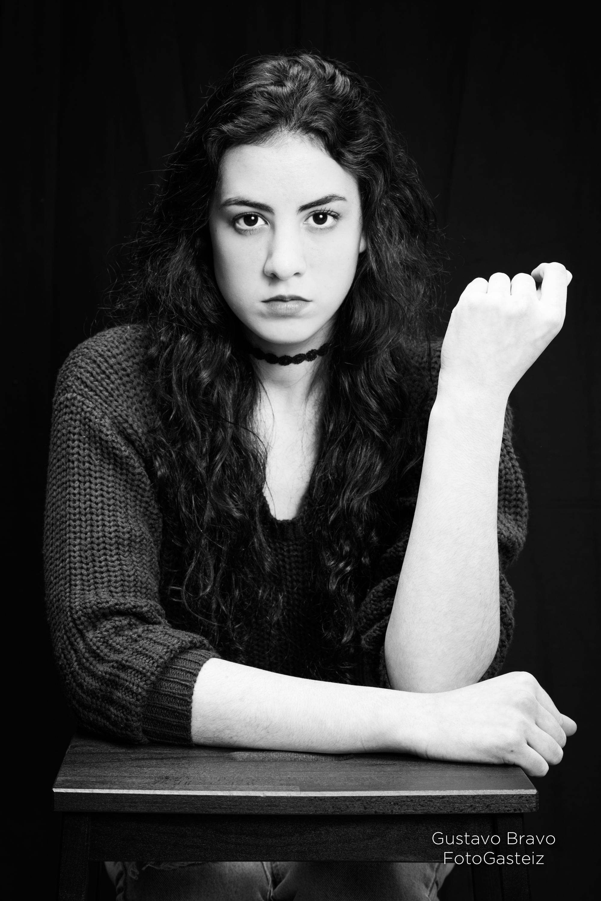 Esta serie de fotografías fue tomada durante una clase del curso de iluminación de estudio, con la modelo vitoriana Nerea Deagra, de MClass Moda, en la que practicamos la clave baja con luz de separación cenital.