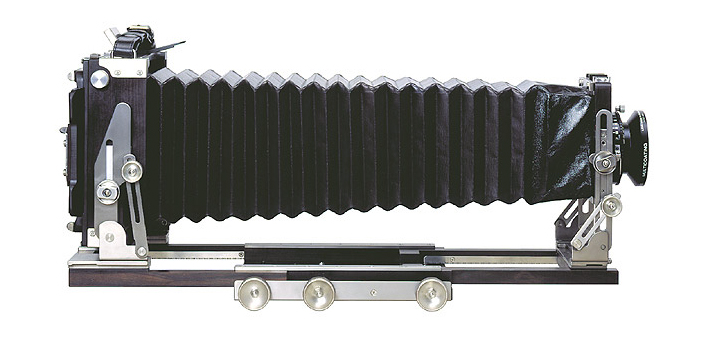 Utiliza una cámara analógica Ebony de gran formato (fabricada a mano por expertos artesanos japoneses con madera de ébano de Madagascar y titanio) de placas en negativo en formato 10×12.