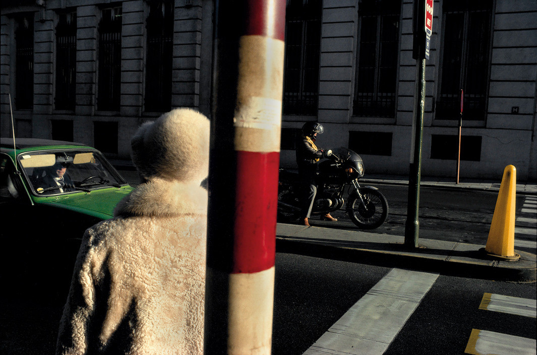 se convirtieron durante años en señas de identidad para este admirador de Henri Cartier-Bresson y de Lee Friedlander, quien buscaba sus referencias cromáticas en la obra de Brueghel, Goya, Matisse y Bonnard, así como en el los artistas pop, en un momento en que solo el cine ofrecía una buena fotografía en color de forma asequible.