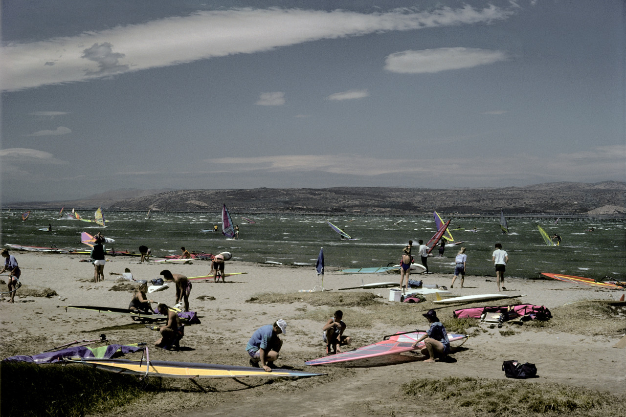 A comienzos de los 90 empezó a hacer fotos de su serie ‘Rivages’, que le llevaría muchos años y países. En ella retrata la naturaleza estructurante del color, organizado por la tensión de la línea del horizonte. Con fotos tomadas en todo el mundo, Gruyaert se opone al bullicio de la ciudad con una naturaleza reducida pero intensa. Sus paisajes nunca están vacíos; son lugares habitados donde la luz, el color, los objetos, las personas y las situaciones tejen un cuadro sereno y sublime.