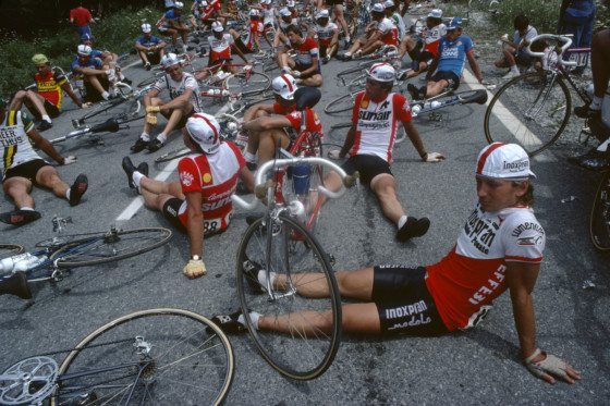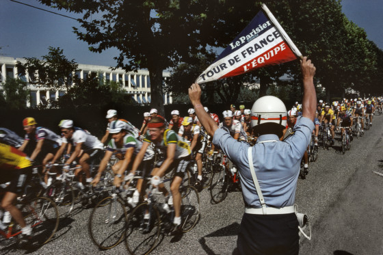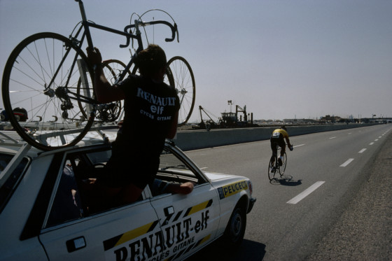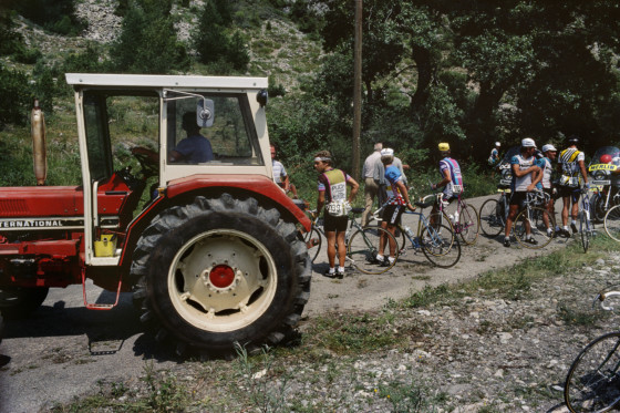 El enfoque de Harry Gruyaert para fotografiar el Tour fue bastante pragmático en ese momento. En 1982, él estaba allí para hacer un trabajo para la compañía petrolera Elf y el trabajo resultante se convirtió en un gran reportaje exhibido en París y en un libro, pero una vez que revisamos las imágenes y él reescribió un nuevo lote, comenzó a recordar más sobre la carrera.