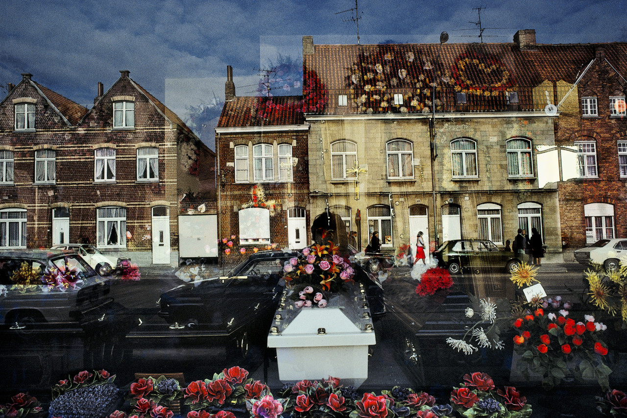 En 1988, con 47 años, de regreso a su Bélgica natal, junto con su compañero artista Hugo Claus, Harry Gruyaert aborda sus emociones contradictorias hacia su tierra natal de Bélgica con su marca de uso de color.