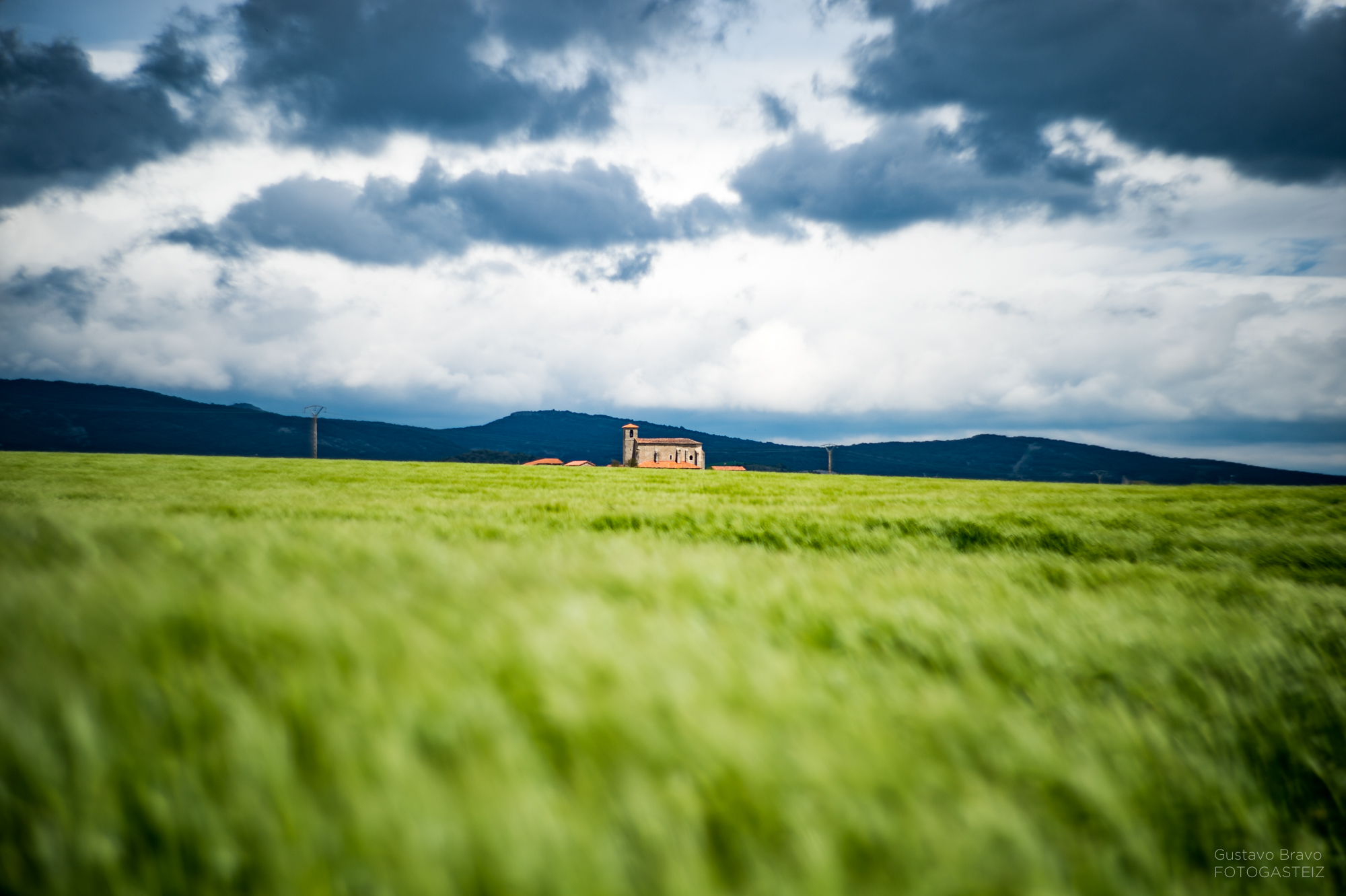 Esta serie de fotografías fue tomada el pasado mes de mayo, durante un ventoso y soleado día de primavera, justo cuando la cebada está más alta y verde en un camino que une las localidades alavesas de Mendoza y Trespuentes.