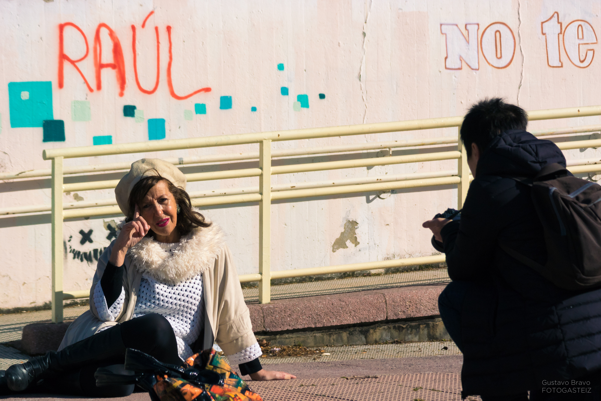 Esta serie de fotografías fue tomada este miércoles 1 de marzo, durante una clase del Curso de Retrato de FotoGasteiz, en la Plaza de la Constitución de Vitoria-Gasteiz.